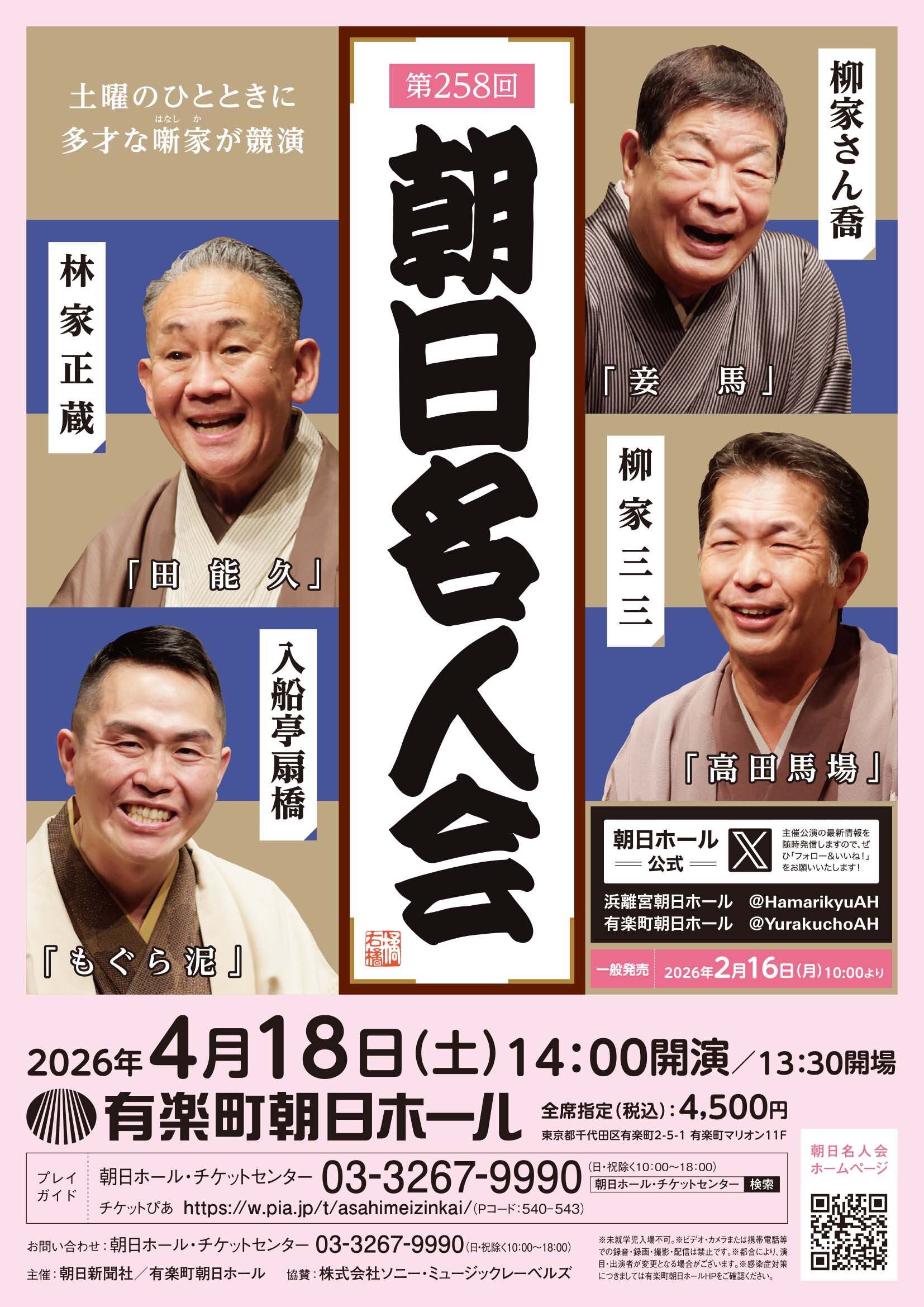 朝日ホール・チケットセンター03-3267-9990(オペレーター対応 日・祝除く10:00~18:00)